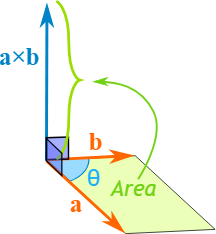 - The magnitude of the area of the shape/parallelogram both vectors make. Due to this being mostly in 3d space I will use images found online to demonstrate this.